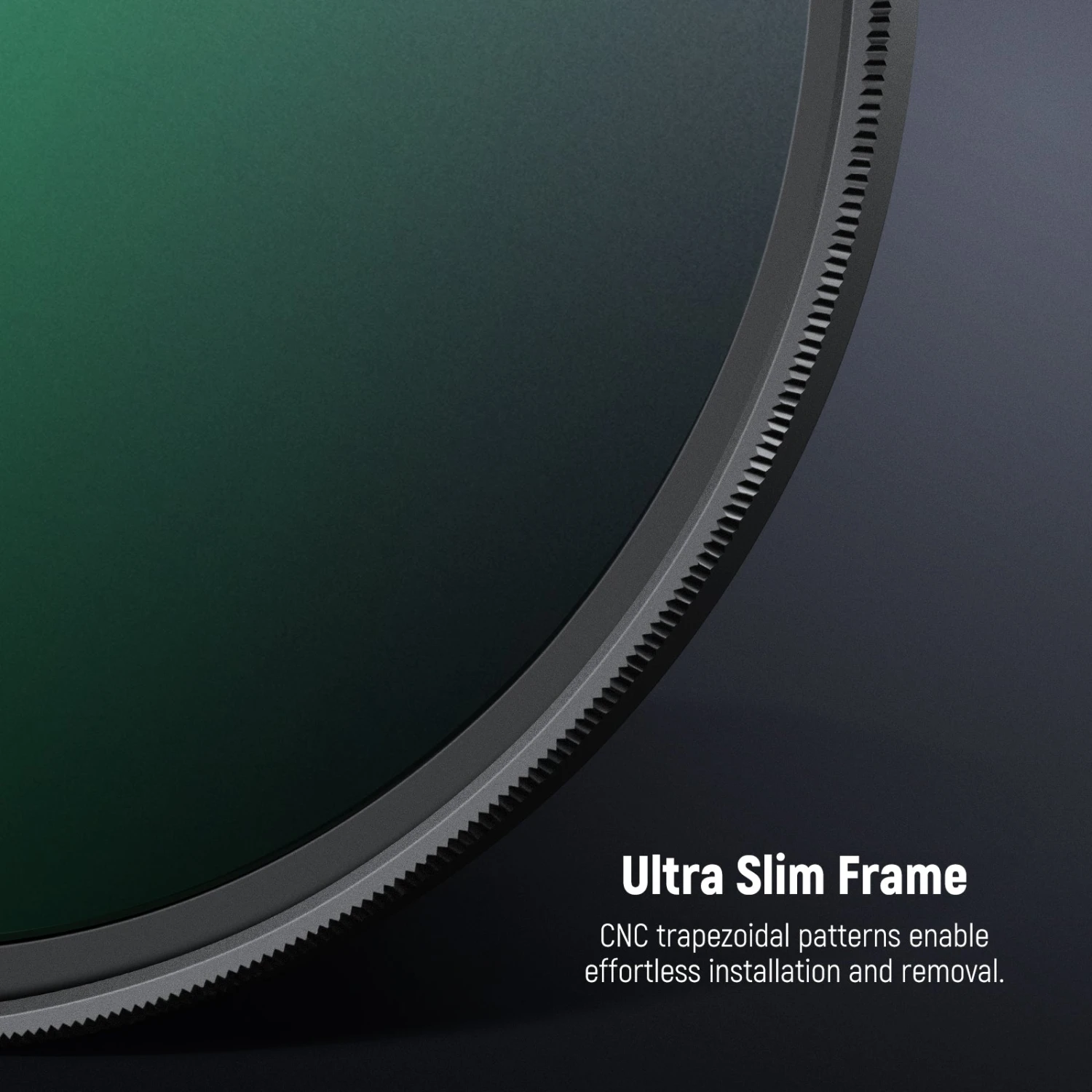 - Nonslip and Ultra Slim Frame– The ultra slim frame avoids vignetting and dark corners on wide angle and telephoto lenses. CNC trapezoidal patterns enable effortless installation and removal