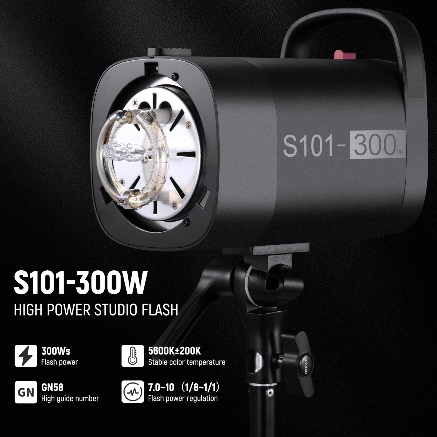 - Main Features: 300Ws/150W modeling lamp/GN58