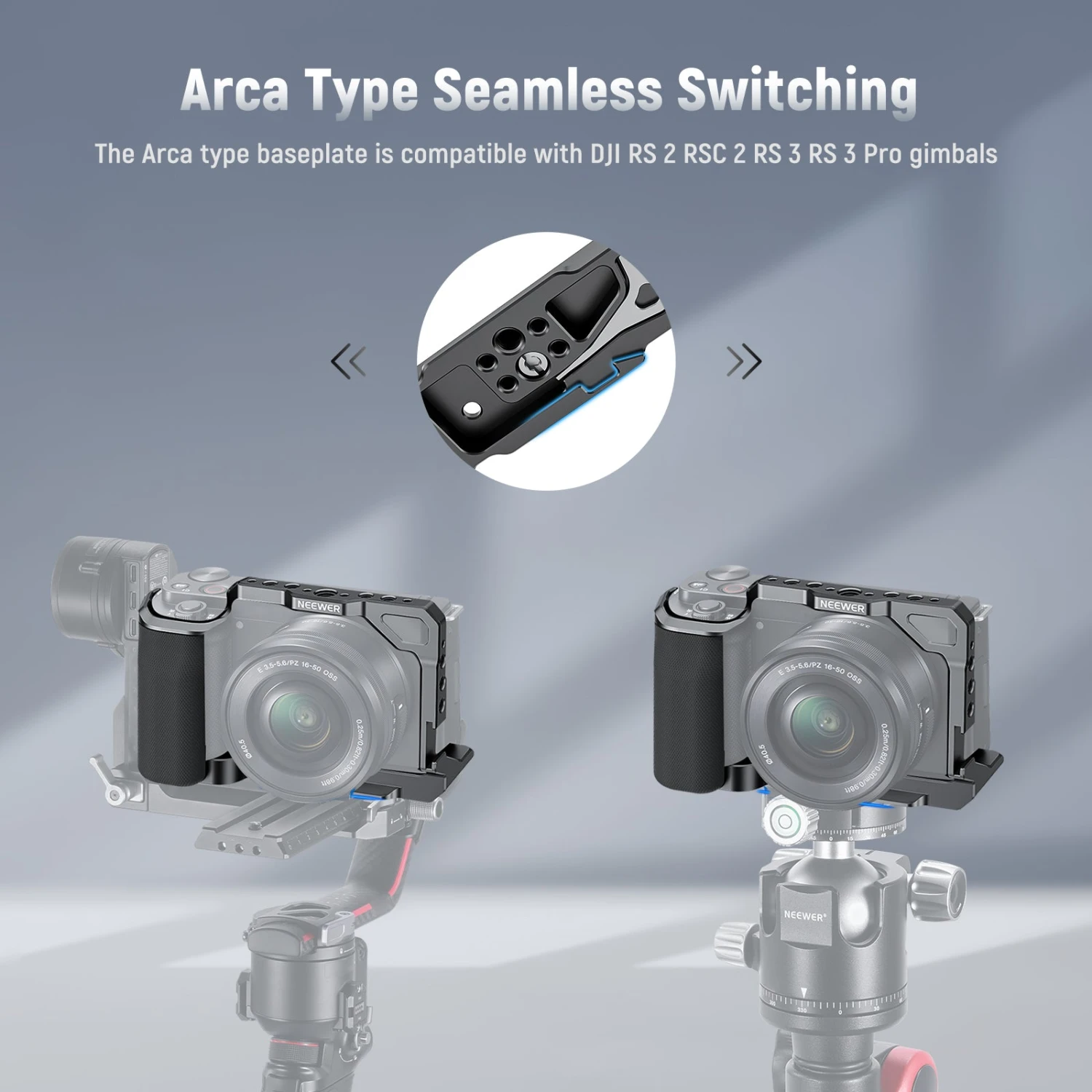 - Compatible with Sony ZV-E10– NEEWER CA003S is a CNC machined aluminum formfitting cage for the ZV-E10 vlog camera. Full access via precision cutouts for summarys, ports, card slots, LCD flip screen, and an expanded hot shoe area to be compatible with Sony ECM-W2BT Microphone HVL-F32M Flash, and other accessories. It also features a slot for the dummy battery cable, allowing flat placement on tables. Weighing just 4.6oz/129g, this cage is lightweight yet robust and protective