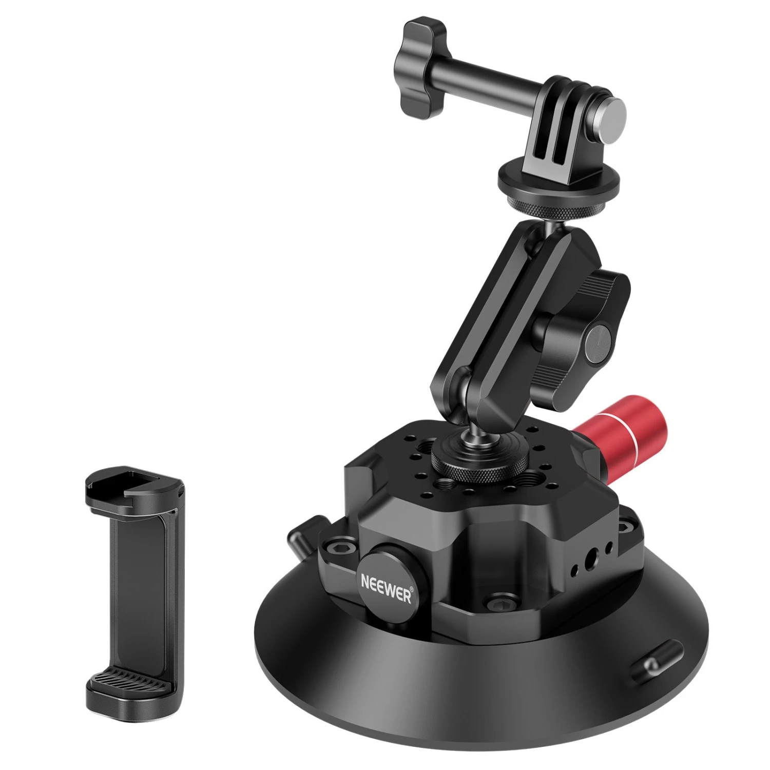 - Premium Construction– Crafted with rigid and corrosion resistant aluminum alloy, the suction cup camera mount can withstand uncertain outdoor environments. The silicone rubber cup is easy to clean with water. Note: If residues appear on car and desktop surfaces, please clean them with alcohol.