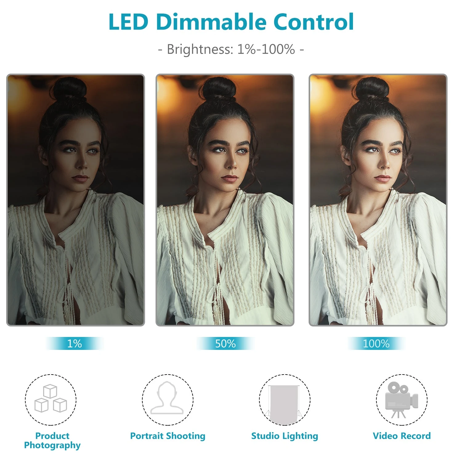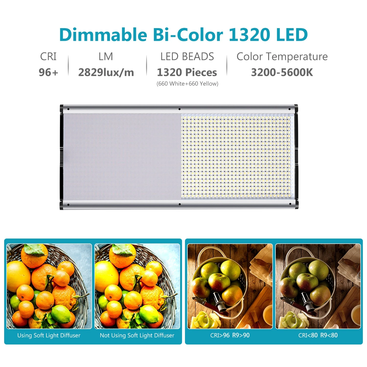 - 1320 BI-COLOR LED BULBS: With 1320 individual LED long-lifespan and high-luminance bulbs (660 White + 660 Yellow) and the brightness can be adjusted, it shines an even and stable light output. CRI 96+ can restore the true color of portraits, landscapes and objects perfectly