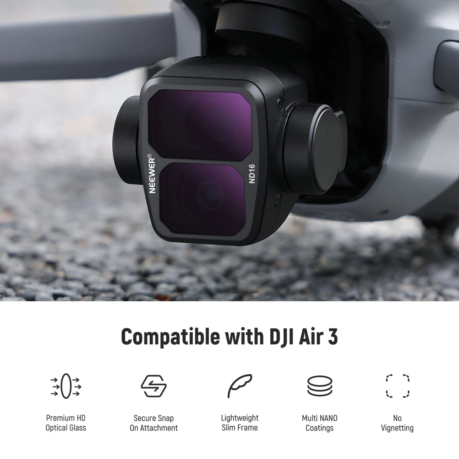- Designed for Air 3 Drone– Introducing the latest must have UV ND CPL filter set, designed for the wide angle & telephoto dual camera gimbal system of Air 3. It’s a game changer for all drone enthusiasts seeking to fine tune shutter speeds, reduce flare, enhance color and achieve perfect exposure in different weather conditions