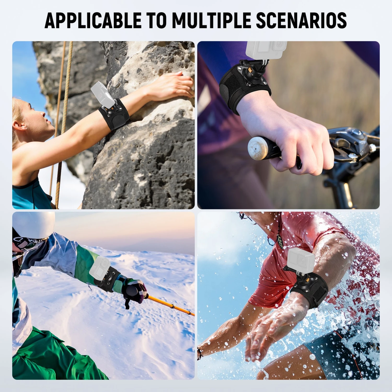 - Stable and Safe– For added stability, the action camera wrist mount comes with an extra elastic hook and loop strap and 4 screws on the mount base to hold your action camera in place during your thrilling outdoor adventures