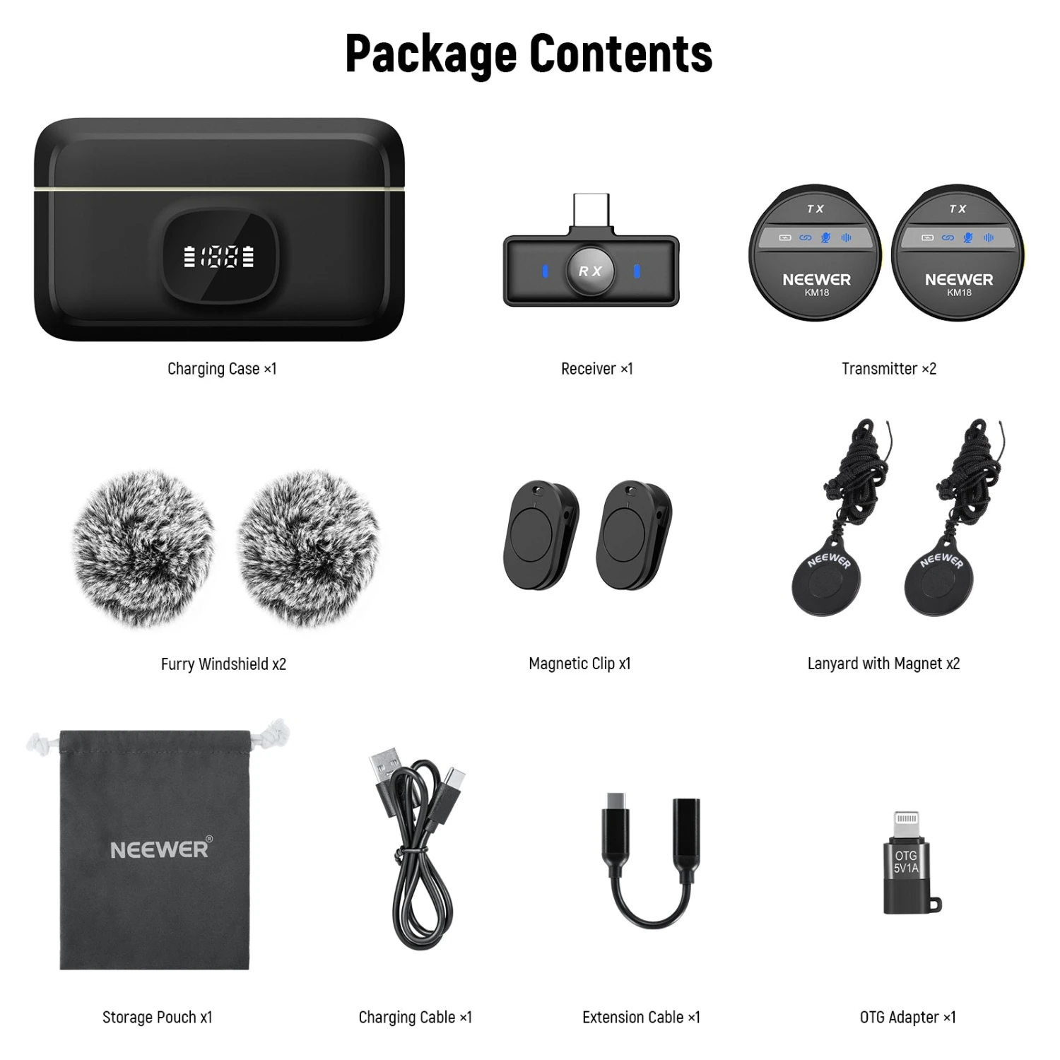 - Lightweight Clip On Microphones– Shaped as a mini summary, each lapel transmitter is only 0.5oz/14g—easy to clip on shirts, clothes or magnetically attach via a lanyard, or just handheld. The wireless omnidirectional condenser mic ensures excellent audio with minimal background noise at a 70dB signal to noise ratio and handles a maximum 115dB sound pressure level for recording high pitched sounds