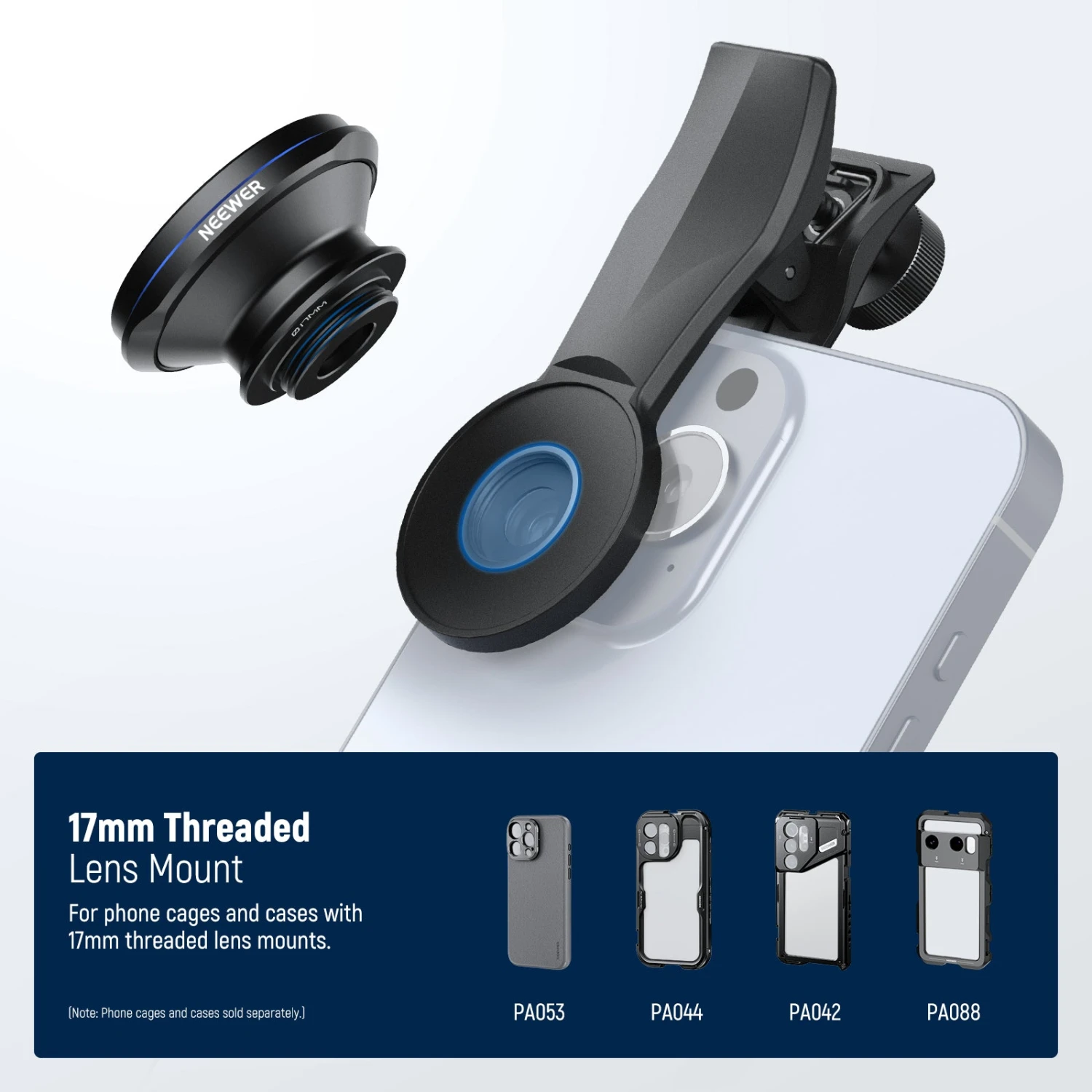 - Handy Phone Lens Clip– The phone lens clip can attach to most smartphones, compatible with iPhone 16 Pro Max iPhone 15 Pro Max Samsung Galaxy S24 Ultra and more. The lens also suits NEEWER phone cages, phone cases, and backplates with 17mm threads