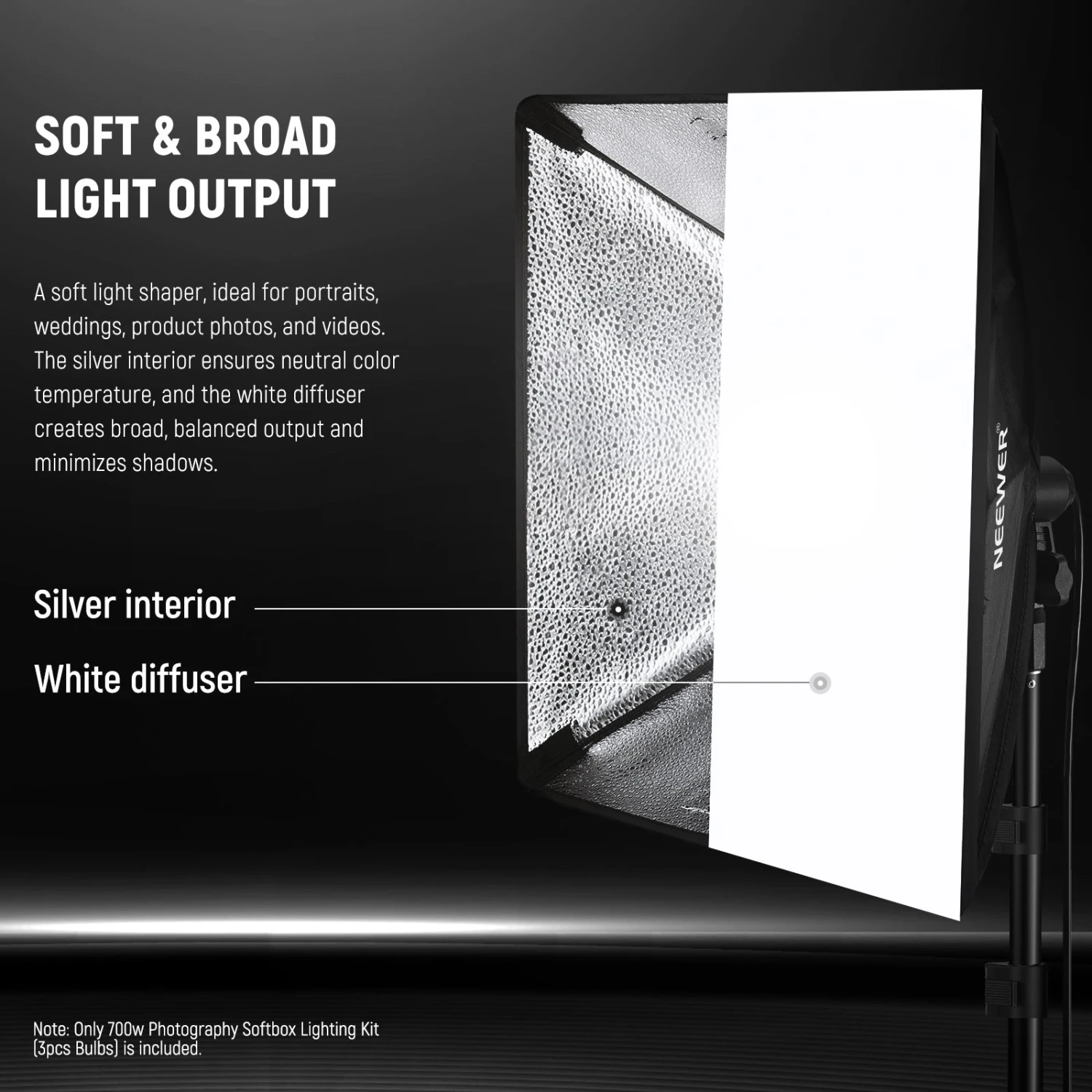- This softbox creates even and diffused light by directing light through the inner aluminized fabric surface act as an efficient reflector.