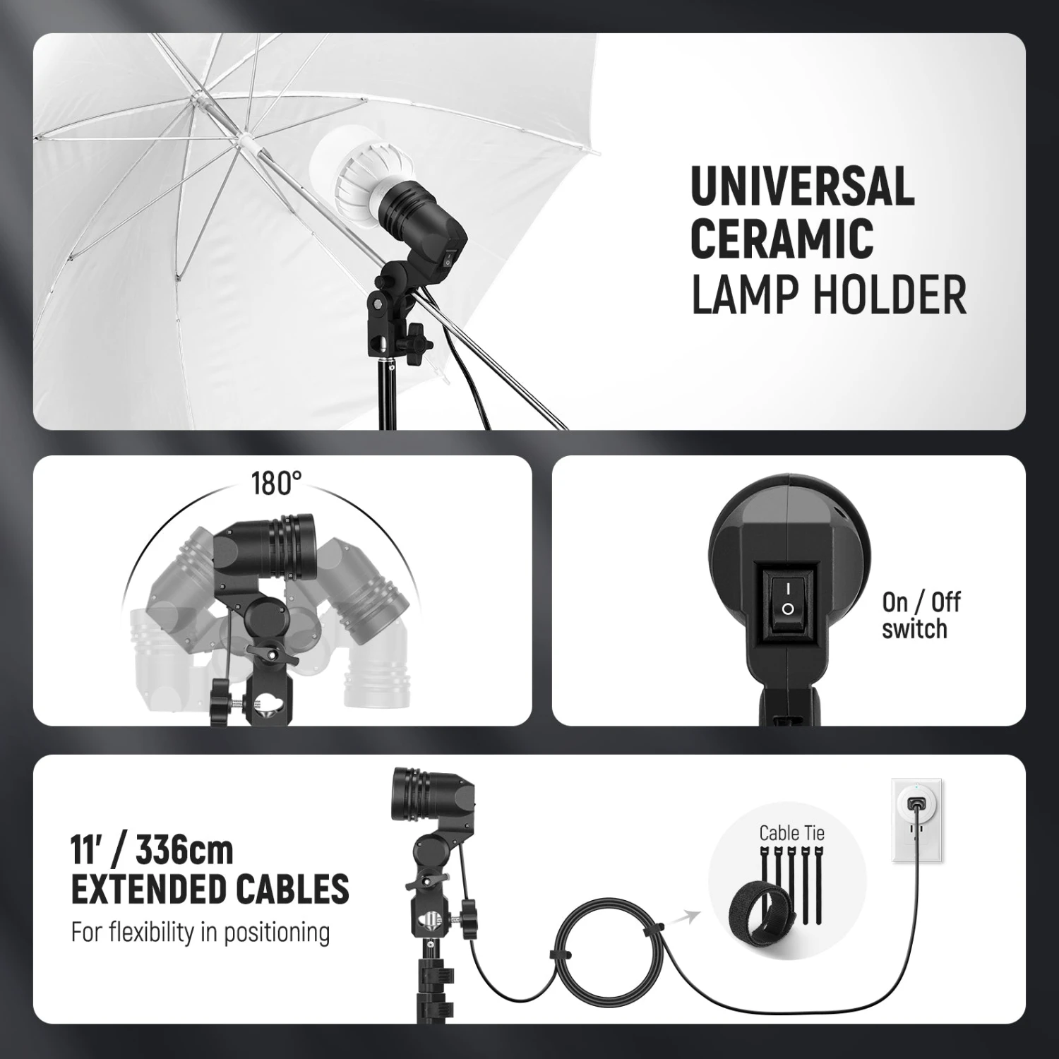- Main Features: Bulbs/Umbrellas/Light Stands