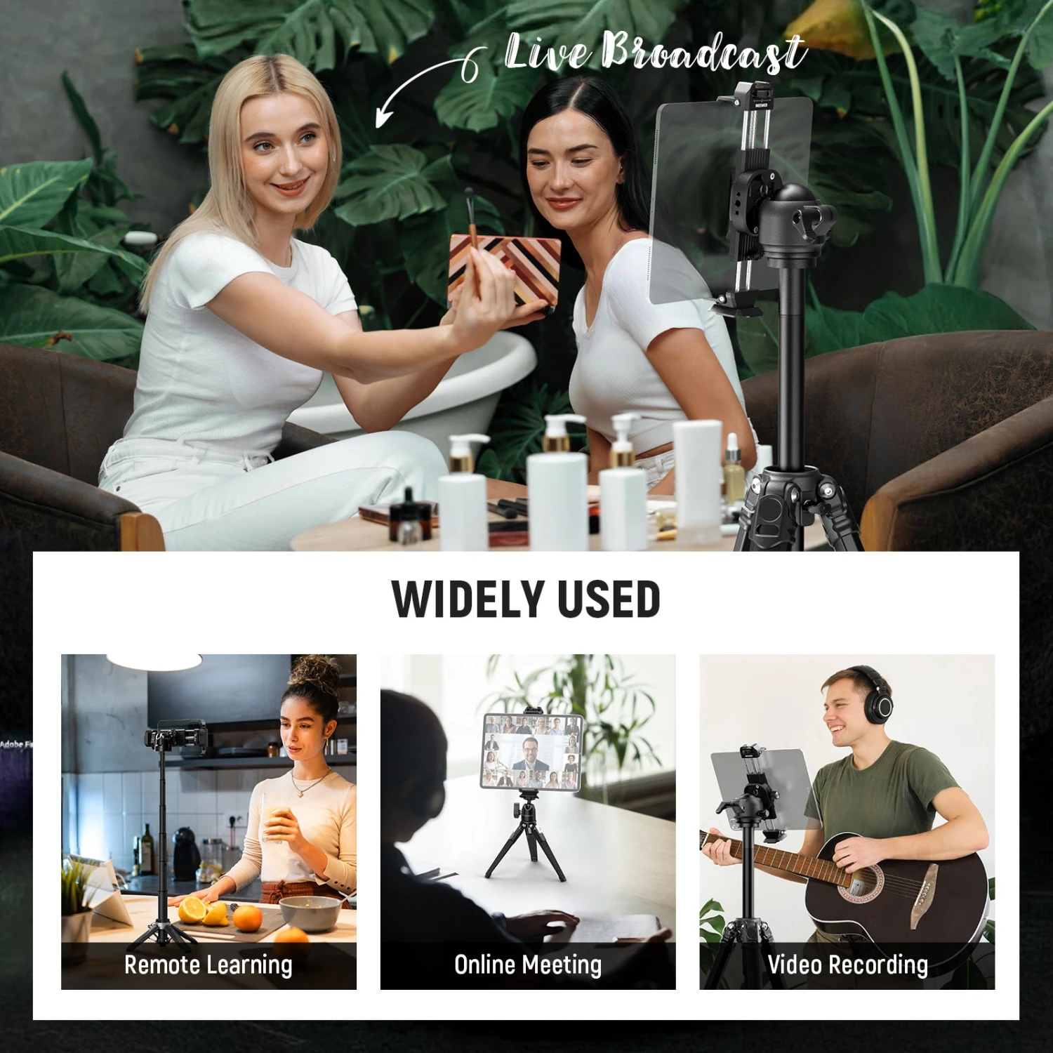 - Multi Functional Tablet Tripod Mount– Made of aluminum alloy, the metal tablet holder securely attaches your tablet or smartphone to tripod heads, magic arms, and more for flexible use. Its wide clamping range is compatible with most tablets and phones on the market, ideal for tablet monitoring, live streaming, video recording, Zoom calls, online conferences, remote learning, gaming streaming, etc. The foldable design makes it easy to store and carry