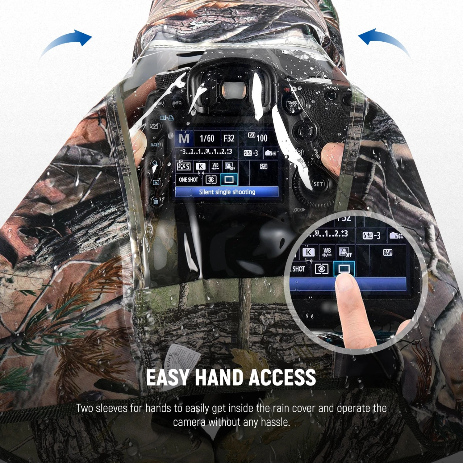 - Quick & Easy Installation– Easily slip the rain cover over your camera setup and ensure a secure fit around your device with touch fasteners. The enlarged opening grants your access to essential camera functions without removing the cover