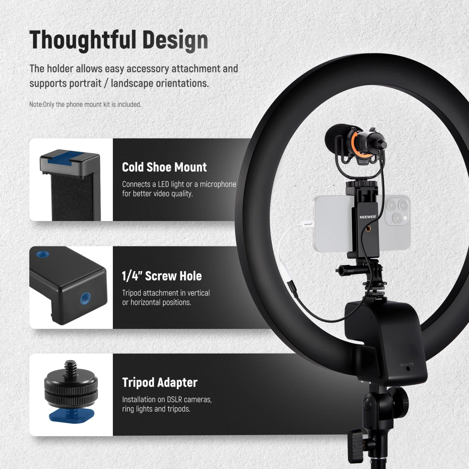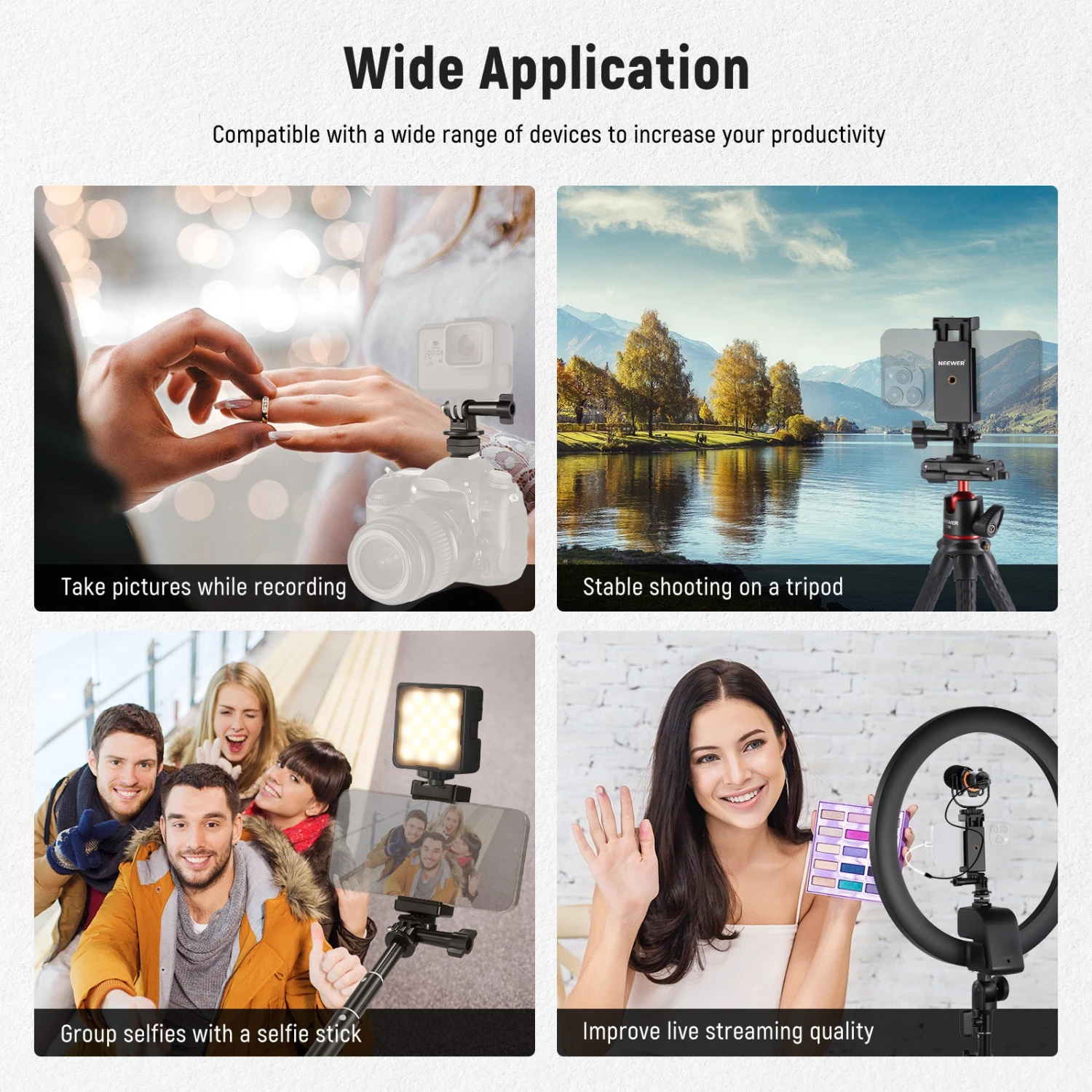 - The kit includes a hot shoe mount, an action camera adapter, and a universal phone holder, compatible with GoPro Hero 11 10 9 series action cameras or smartphones on your DSLR or ring light