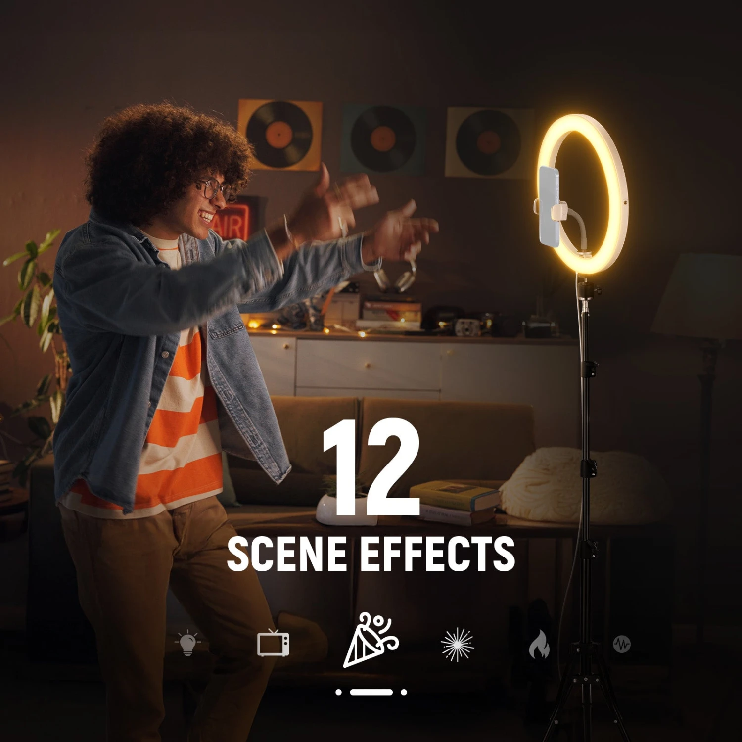 - CCT & FX Scene Effect Modes– With 90 cool white and 90 warm white LEDs, the CCT Mode offers 2900K-7000K warm and cool lighting along with 1%-100% linear dimming. The flexibly adjustable lighting with high CRI of 97+ and TLCI of 98+ can flatter all skin tones, brighten your face, and minimize blemishes. FX Mode brings 12 realistic scene effects for professional ring light video shooting. Use the wired controller to quickly get the effects you want