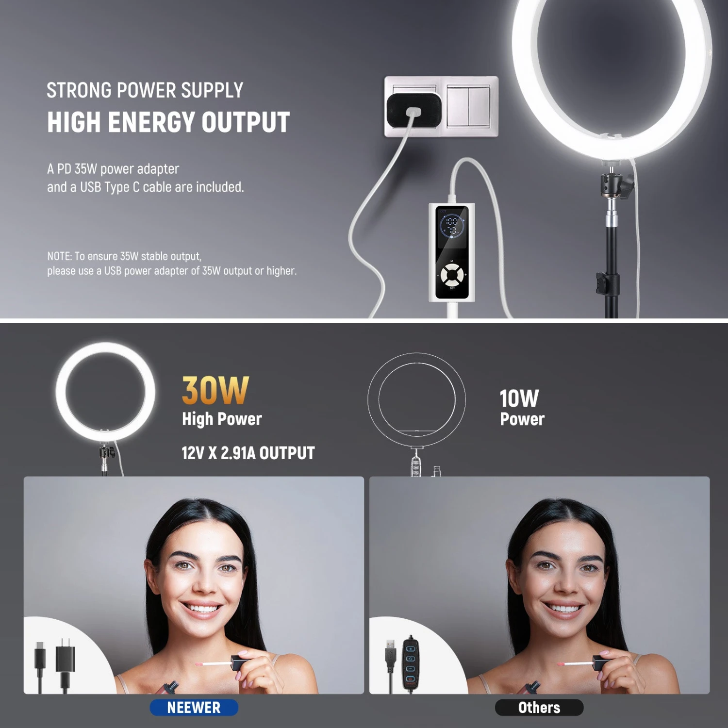- 30W Powerful Bi Color Ring Light– RH12B Pro is an upgrade of RH12B, with a 30W output, 180 quality LEDs that deliver up to 3290lx/0.5m (7000K) for bright continuous lighting. The white diffusion cover for soft, smooth, even illumination. Ideal as key or fill light equipment kit for YouTube video recording, makeup artist, esthetician eyelash (lash) extension, tattoos, barber, streamer live streaming, podcast, studio photoshoot, photography, Zoom calls, selfies, videography, TikTok films, etc