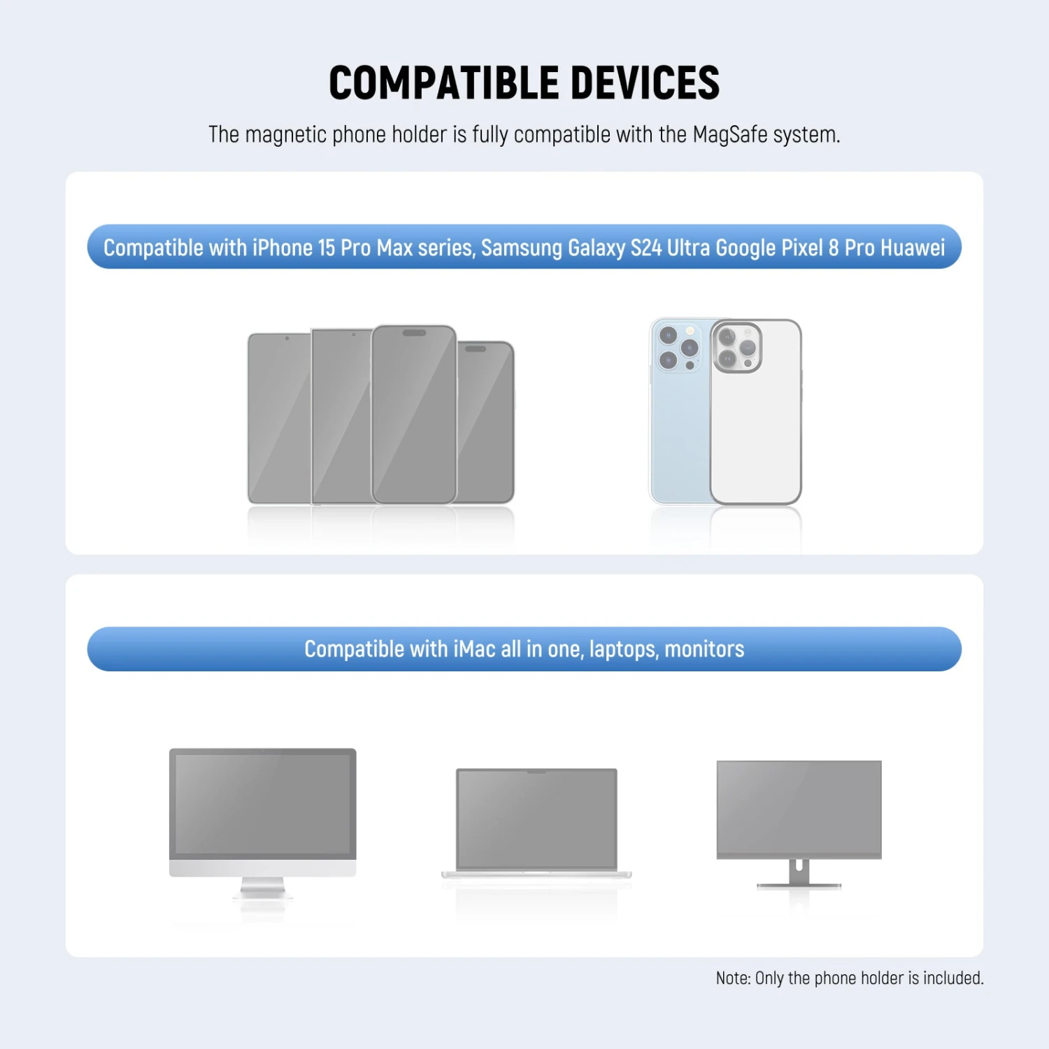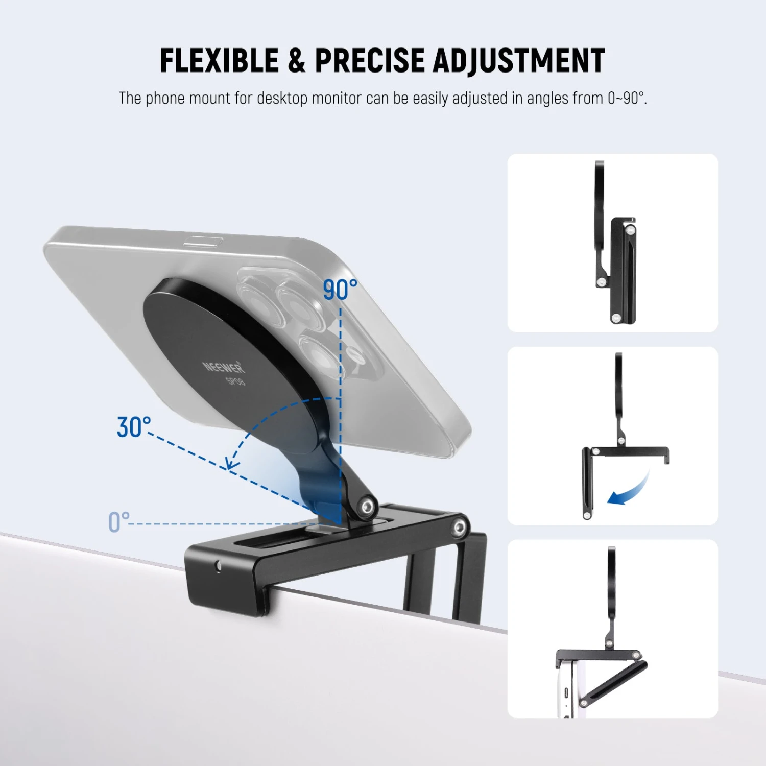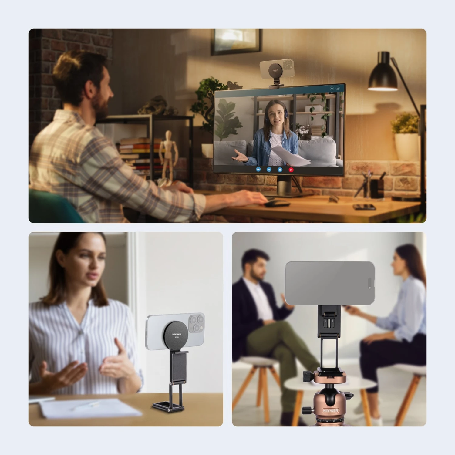 - Phone Camera Mount for Desktop Monitor– Use this continuity camera mount to attach your smartphone to the desktop display, monitor, laptop, or TV, versatile as a webcam mount compatible with Magsafe iPhone series compatible with Andriod smartphones compatible with Mac desktops and laptops compatible with iMac all in one computers compatible with Apple TV 4K and other screens, ideal for FaceTime, video conferencing, live streaming, and other content creation