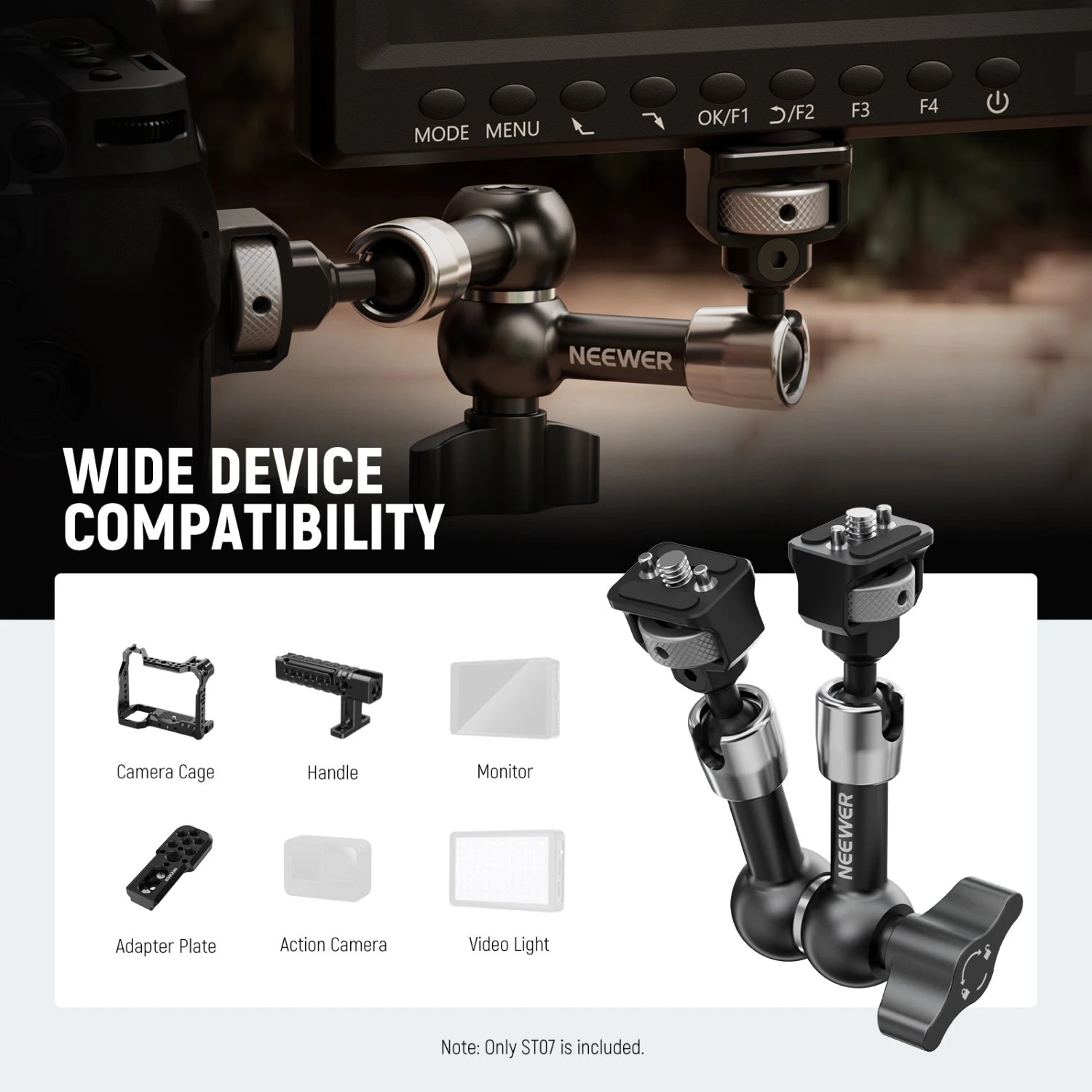 - Wide Device Compatibility– This magic arm work perfectly with NEEWER Super Clamp, GP-7 Action Camera Mount, GP-3 Phone Holder with Cold Shoe Adapter, CA013 Suction Cup Mount, F100/F400 PRO/F500 Camera Field Monitor, RGB61/RGB62/RGB176-A1/PL81 LED Video Light. Also compatible with GoPro accessories compatible with Insta 360 x3 accessories compatible with Insta 360 x4 accessories