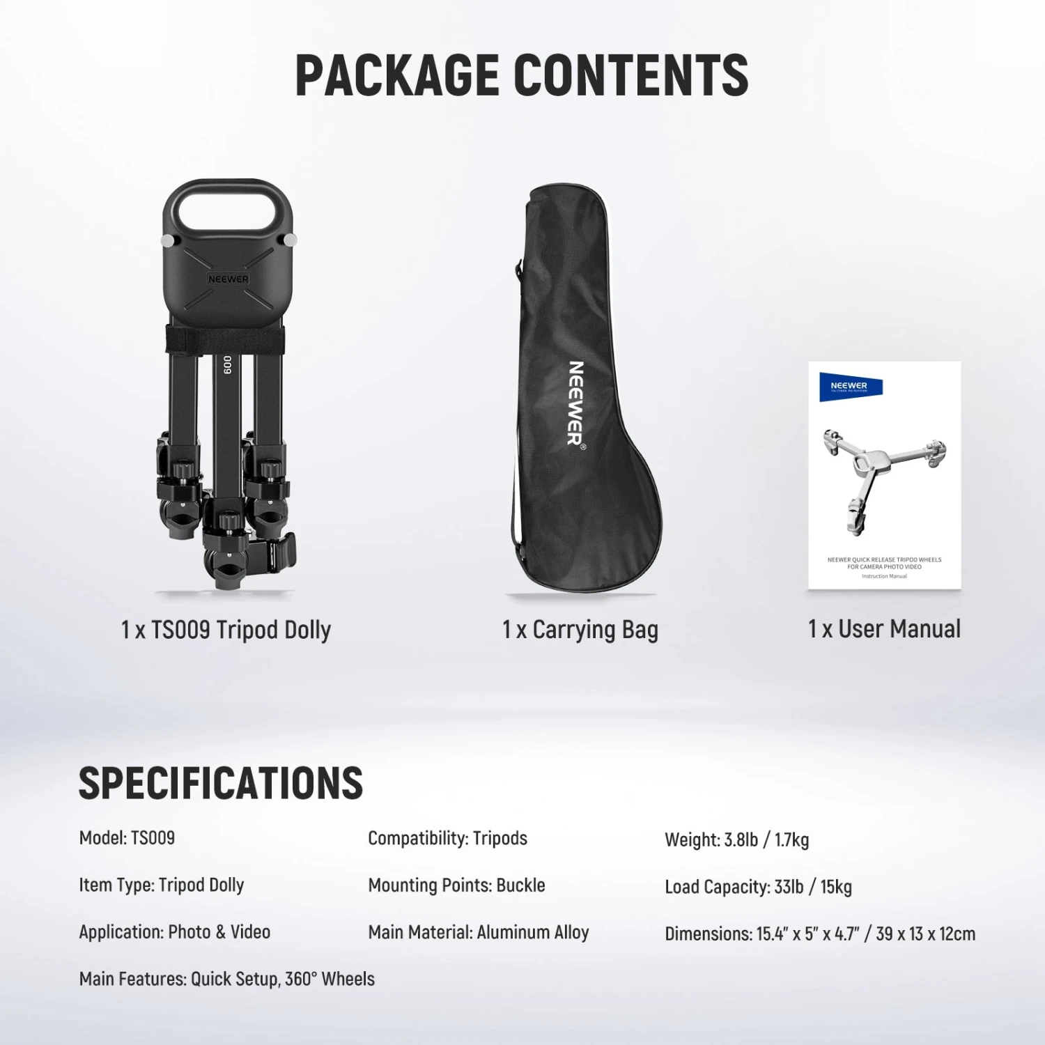 - 1 x TS009 Tripod Dolly