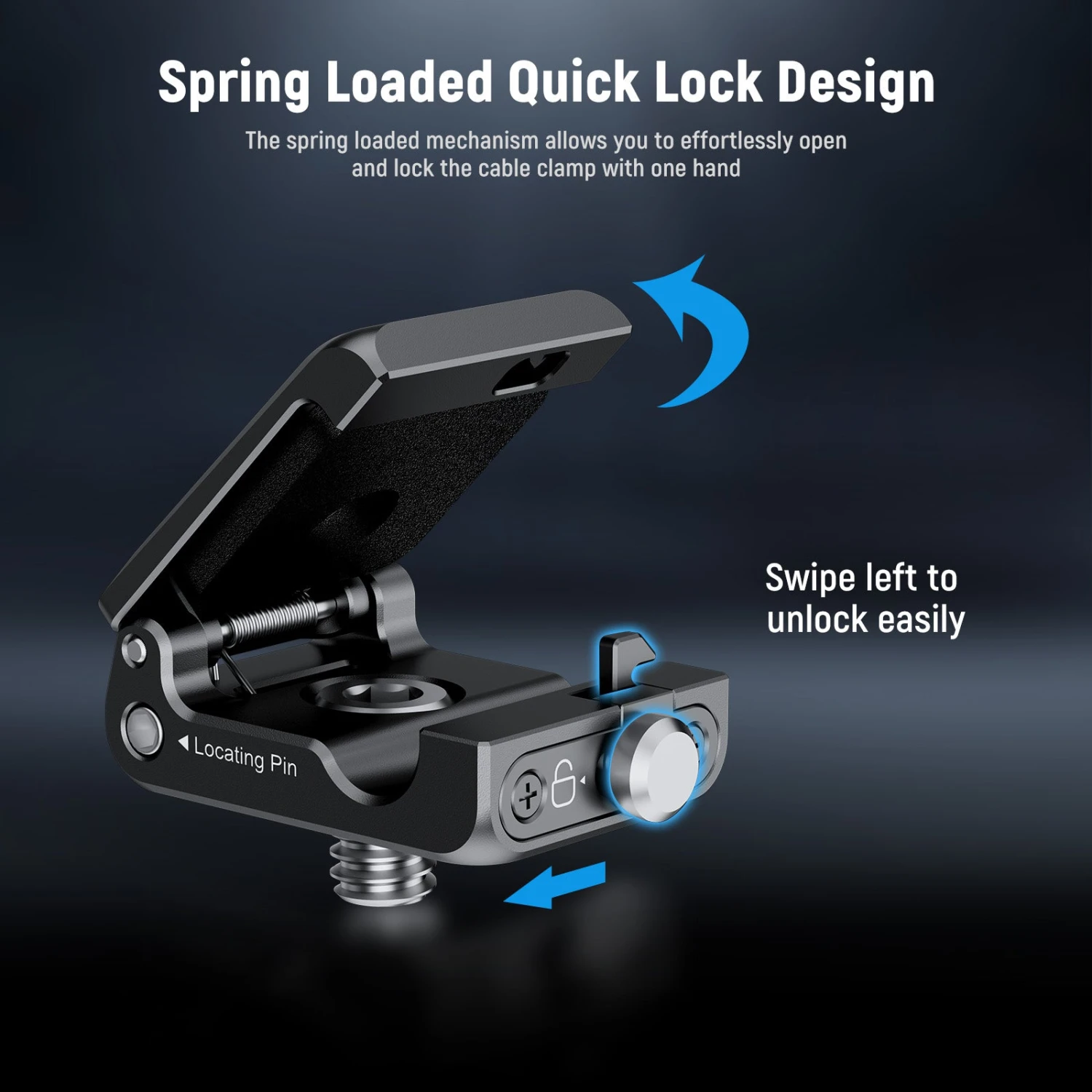 - Spring Loaded Quick Lock Design– The spring loaded mechanism allows you to effortlessly open and lock the cable clamp with one hand