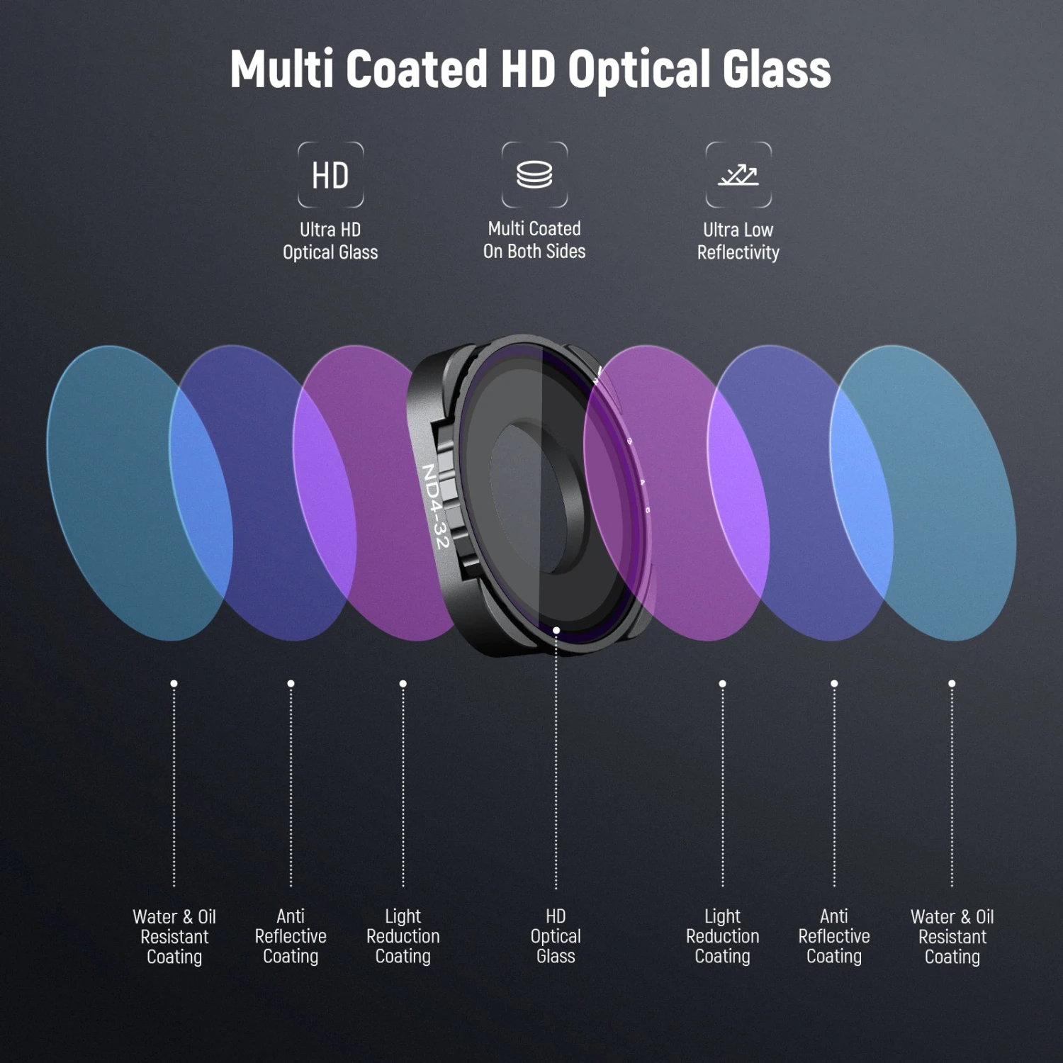 - Multicoated HD Optical Glass– Multiple oleophobic and scratch resistant coatings on both sides of the HD optical glass ensure excellent optical performance and effortless daily cleaning. Note: Lens, CPL &ND/PL Filter though the filter features a waterproof coating, the entire action camera cannot be used underwater