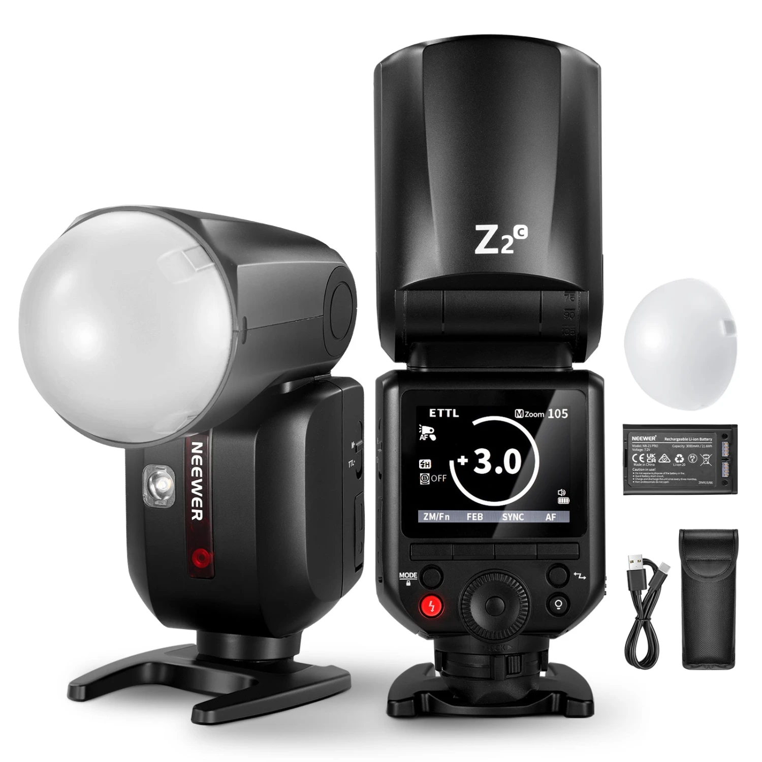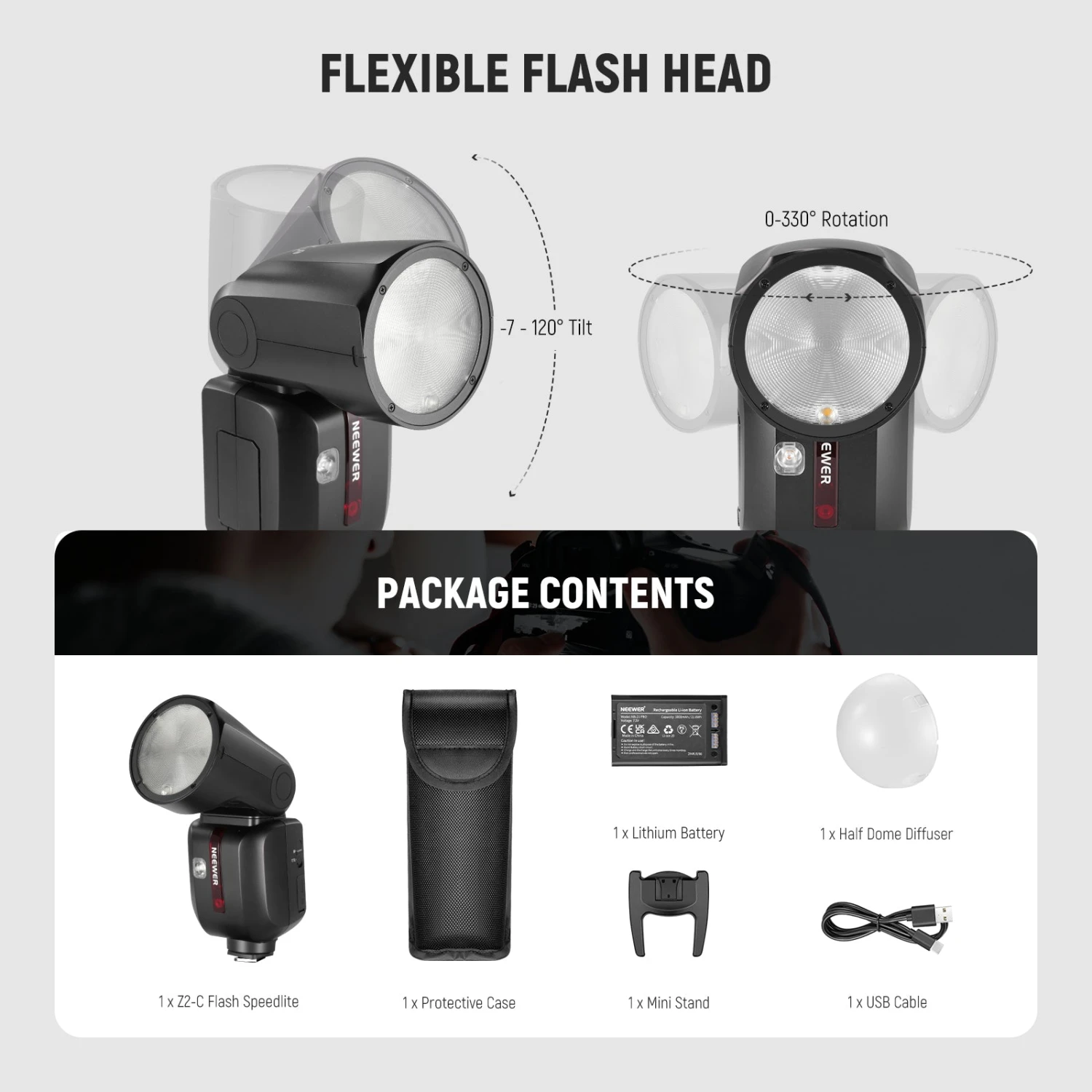 - Enhanced UI and TTL/M Mode Switch– This NEEWER Z2-C speedlight features an upgraded UI and a TCM key that switches from TTL to M mode in a second. The flash speedlite also supports automatic metering, 1/1-1/256 manual dimming, 28-105mm focal length, stroboscopic flashes, 1/8000s HSS, front/rear curtain sync, FEC/FEB/FEL (flash exposure compensation/bracketing/locking), S1/S2 optical slave modes and more